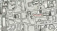 In a judicial act of 1243 it was known as rue André Machel after its owner.[1] It was later renamed rue de l'Encloître Saint-Benoist[5] then rue du Cloître Saint-Benoît since it served église Saint-Benoît-le-Bétourné.[1] Around 1280-1300 it was mentioned in Le Dit des rues de Paris by Guillot de Paris as en Cloistre Saint-Beneoit le bestourné.
