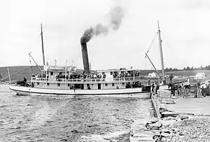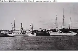 SS Dufferin was a coastal steamship built by Joseph McGill of Shelburne, Nova Scotia on April 14, 1905. Originally owned by New Burrell Johnson Iron Co Ltd., Yarmouth, Nova Scotia, she was sold to sea merchants William A. Murdock and William J. Murdock of Sherbrooke, Nova Scotia on the same day. Under the Murdoch’s command the Dufferin served as a passenger and cargo ship between Halifax and Sherbrooke. The Dufferin steamed along coastal communities until the Hochelaga Shipping and Towing Co. Ltd. dismantled her up in 1938. Transport Canada closed the Dufferin's registry on December 31, 1937.