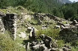 Sant Sebastià del Sull is a ruined Benedictine monastery in Saldes, Berguedà comarca, Catalonia, Spain. Originally constructed in the 9th century in Romanesque style, the building was renovated several times. After it collapsed, it was rebuilt in the 15th century. Now in ruins, Dr. Manuel Riu Riu, made several excavations between 1971–77, which served to expose unique building architecture and important Catalan Romanesque necropolis.