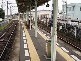 The station has a single island platform connected to the station building by a level crossing. The station building has automated ticket machines, and automated turnstiles which accept the NicePass smart card, as well as ET Card, a magnetic card ticketing system. The station is unattended.