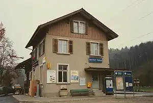 Sennhof-Kyburg railway station is a railway station in the Swiss canton of Zurich and city of Winterthur. It takes its name from that city's quarter of Sennhof, in which it is located, together with the adjoining municipality of Kyburg. The station is located on the Tösstal line in the Töss Valley.