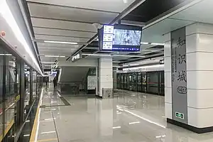 Sino-Singapore Guangzhou Knowledge City station (Chinese: 知识城站), is a station of Line 14 of the Guangzhou Metro. It started operations on 28 December 2017.[1]