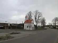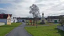 Budičovice is protected as a village monument zone for its folk architecture from the 19th century. The homesteads have decorated façades in the Folk Baroque style, typical for this region. The landmark of the village green is the Chapel of Saint John of Nepomuk from around 1875.[3]