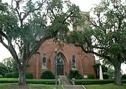 The church body was first constituted in 1829. Services were held in the old Leon County court house on Monroe Street from 1829 to 1837. From 1837 to 1879 services were held in first church building at the same site. This building was consecrated in 1838, but eventually burned down in 1879. Services resumed in the court house, which also eventually burned down, and then in the capitol building, during the erection of present Gothic style, red brick church, erected in 1880 and dedicated in 1888. This building still stands, with art glass and memorial glass windows, pipe organ, bronze memorial tablet, altar service, bronze memorial tablet, altar service, carved lectern, prie-dieu, carillon. The church owns its rectory.[2]