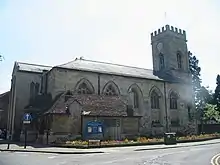 The present parish church is dedicated to Saint Mary the Virgin & St Giles, the latter being the patron saint of cripples. Saint Giles was born at Athens in 645; he was a cripple, and though he had the means of obtaining all the comforts he wished, he would not, but devoted his life and his means in endeavouring to ameliorate the sufferings of the afflicted. Most churches dedicated to his name, are erected by the road side, the supposition for such being, that all weary travellers could enter and find rest and peace.[1] Devotion to him was brought to the British Isles as he founded the abbey in Saint-Gilles-du-Gard whose tomb became a place of pilgrimage and which was on the Crusader route to the Holy Land. It was also a stop on the road that led from Arles to Santiago de Compostela, the pilgrim Way of St. James. Giles is one of the Fourteen Holy Helpers.