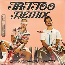 On July 9, 2020, Alejandro released a remix of "Tattoo", with Colombian singer Camilo, as the lead single from his debut studio album Afrodisíaco.[25] It marked the first collaboration between the two singers.[26] Evaluna Montaner and Camilo joined the original version's lyricists to write the remix version.[27] The version features elements of pop and urban,[28][29] and runs for a total of 3 minutes and 42 seconds.[30] It is about falling in love with a girl who has the singers "wrapped around her finger", the way "Camilo is willing to get her name tattooed".[25]