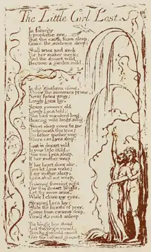 The Little Girl Lost is a 1794 poem published by William Blake in his collection Songs of Innocence and of Experience. According to scholar, Grevel Lindop, this poem represents Blake's pattern of the transition between "the spontaneous, imaginative Innocence of childhood" to the "complex and mature (but also more dangerous) adult state of Experience."[1]