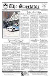 The Spectator is a biweekly high school newspaper published by students of New York City's Stuyvesant High School. The paper, founded in 1915, is one of Stuyvesant's oldest publications.[1] It has a long-standing connection with its older namesake, Columbia University's Columbia Daily Spectator, and it has been recognized by the Columbia University Graduate School of Journalism's Columbia Scholastic Press Association on several occasions.[2] The Spectator's original reporting has been cited by The New York Times and the Associated Press.