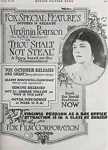 Thou Shalt Not Steal is a 1917 American silent drama film directed by William Nigh and starring Virginia Pearson, Claire Whitney and Eric Mayne.[1] It was based on the story Le Dossier n° 113 by Émile Gaboriau.