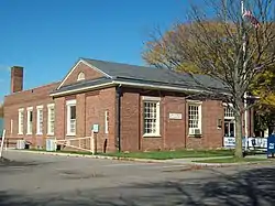 US Post Office-Painted Post is a historic post office building located at Painted Post in Steuben County, New York. It was designed in 1937 and built in 1937-1938 and is one of a number of post offices in New York State designed by the Office of the Supervising Architect of the Treasury Department, Louis A. Simon. It is a one-story, three bay structure clad in red brick in the Colonial Revival style. The interior features a 1939 mural by Amy Jones titled "Recording the Victory" and depicting a Revolutionary War scene.[2]