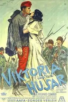 Victoria and Her Hussar (German: Viktoria und ihr Husar) is a 1931 German musical film directed by Richard Oswald and starring Michael Bohnen, Friedel Schuster and Iván Petrovich.[1] It is an Operetta film based on the operetta Viktoria und ihr Husar by Paul Abraham which was itself inspired by a work by Emric Földes. Two later film versions of the operetta were made in 1954 and 1982.