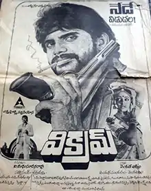 Vikram is a 1986 Indian Telugu-language romantic action film directed by V. Madhusudhana Rao and produced by Akkineni Venkat via Annapurna Studios. The film stars Nagarjuna and Shobana, with music composed by Chakravarthy. It is a remake of the Hindi film Hero (1983) and it is the debut of Nagarjuna as a lead actor.[1][2]