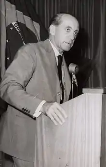 In 1953, Admiral Alvaro Alberto, the first president of Brazil's National Research Council, met with Wilhelm Groth, Otto Hahn, and Paul Harteck, at the Institute of Physics in Hamburg. An agreement was made to ship three centrifuges for uranium enrichment, along with supporting equipment, to Brazil. The shipment was to include components from 14 German companies. Initially, the shipment was thwarted by orders of James Conant, U.S. High Commissioner to Germany. The shipment, however, was finally made in 1956, under the auspices of the University of São Paulo in Brazil.[15][16][17]