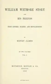 William Wetmore Story and His Friends is a biography of sculptor William Wetmore Story by Henry James, published in 1903. James concentrated on the "friends" of the title, who included Robert Browning, Elizabeth Barrett Browning, James Russell Lowell, and other figures more prominent than Story himself.