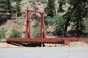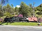 Today, the Yosemite Valley Railroad no longer exists, but some remnants can still be found. The El Portal Inn, which served as the railroad's terminus, burned down in 1932.[35] Some sections of the re-routed railbed were submerged when Exchequer Dam was expanded in the 1960s. However, a few of the railroad's tunnels still remain under Lake McClure and in Merced Canyon. The National Park Service relocated several surviving structures, such as the original hand-turned turntable, from Bagby to El Portal. At El Portal, Caboose No. 15, one of the few surviving pieces of rolling stock, is also on display. Locomotive 29, which was sold to a Mexican railroad after the Yosemite Valley Railroad's closure, is currently on static display in Veracruz, Mexico.[36]